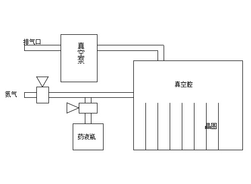 Mula-mula, pam vakum dihidupkan untuk memulakan penyedutan. Setelah tahap vakum dalam ruang mencapai nilai yang ditetapkan (nilai ini boleh ditetapkan dengan menukar nilai P2 pada tolok vakum, lihat manual tolok vakum), nitrogen diperkenalkan. Selepas mencapai tahap vakum yang ditetapkan (nilai ini boleh ditetapkan dengan menukar nilai P1 pada tolok vakum), proses pengenalan vakum dan nitrogen diulang. Selepas mencapai bilangan pengenalan nitrogen yang ditetapkan, penyedutan bermula semula, diikuti dengan pengenalan larutan kimia. Selepas masa yang ditetapkan, pengenalan larutan kimia berhenti, dan fasa pegangan bermula. Selepas masa pegangan yang ditetapkan, pemvakuman dan pengenalan nitrogen bermula semula, untuk bilangan kitaran yang ditetapkan. Setelah sistem melengkapkan proses secara automatik, penggera boleh didengar dan visual diberikan, menunjukkan bahawa wafer sedia untuk dialih keluar.